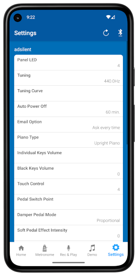 adsilent 2 is a companion app for the adsilent 2 silent system for upright and grand pianos by Excellent Piano Installs GmbH. The adsilent 2 app allows you to easily access and adjust adsilent 2 settings such as tone, reverb and volume.