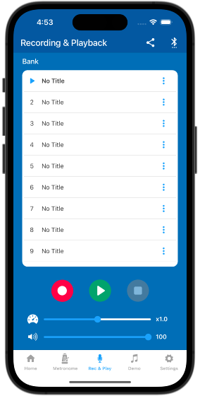 You can also save the performance data from adsilent 2 to your iPhone, where you can send it to someone else via email, or receive new performance data and play it back on your adsilent 2 system.